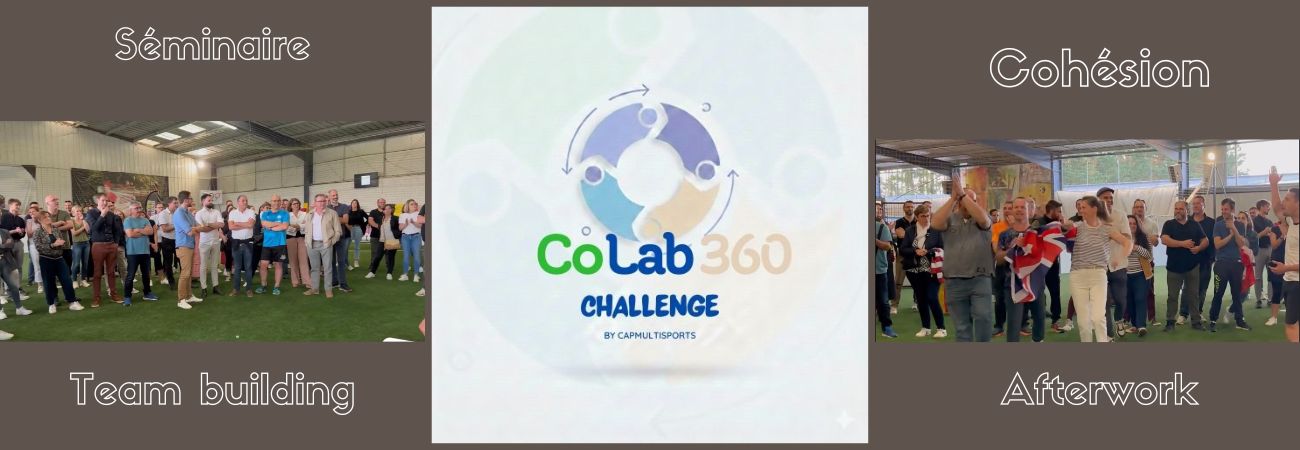 Le CoLab’ 360 Challenge est un format hybride en équipe de 4 à 8 personnes, mêlant compétition, fun et coopération. À travers des défis accessibles à tous, les participants enchaînent des challenges ludiques et collaboratifs, ainsi que des épreuves axées sur la communication et la stratégie.