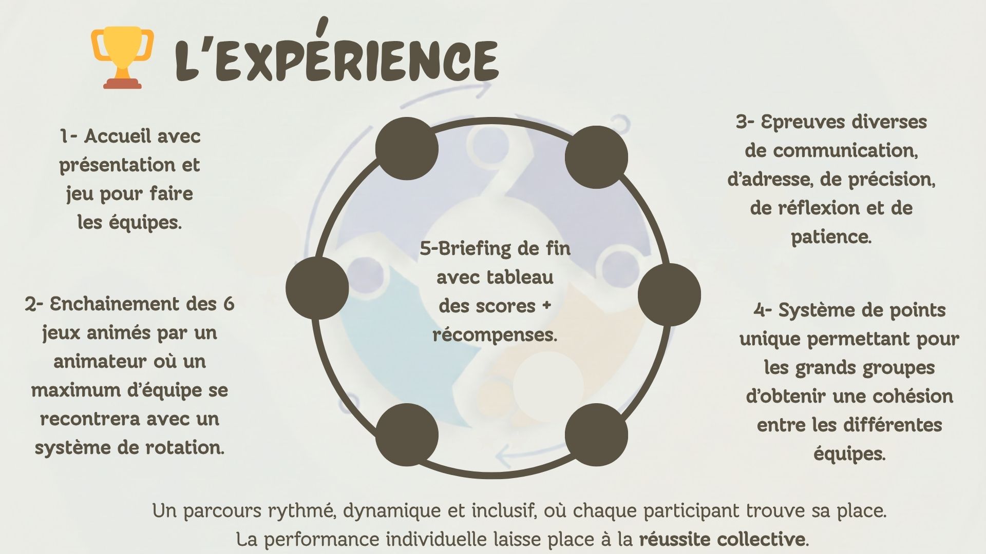 C’est une expérience collaborative et ludique conçue pour renforcer les liens, révéler les personnalités et créer une véritable dynamique d’équipe.
