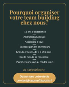 Conseil Capmultisports à la Mézière près de Rennes : Dans chacune de nos animation, nous mettons l’accent sur la cohésion pour un travail d’équipe efficace. Chacun apporte son énergie.